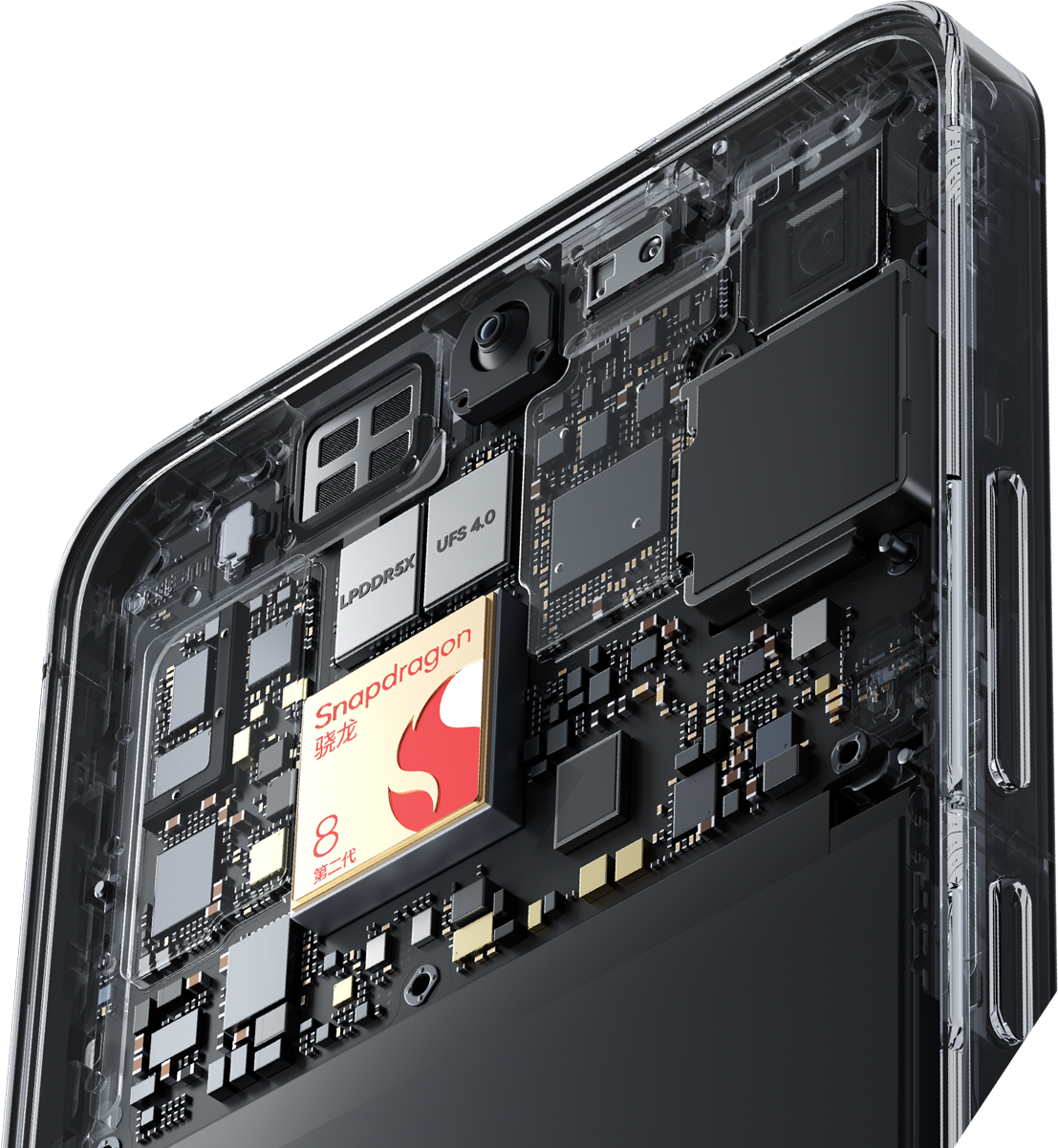 第二代骁龙 8 旗舰处理器搭配 LPDDR5X + UFS 4.0¹ 疾速闪存组合