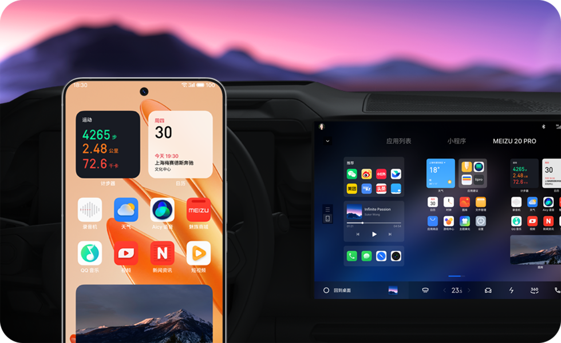 魅族 20 支持手机车辆之间数据流转坐进车内,手机内容智能互传车机